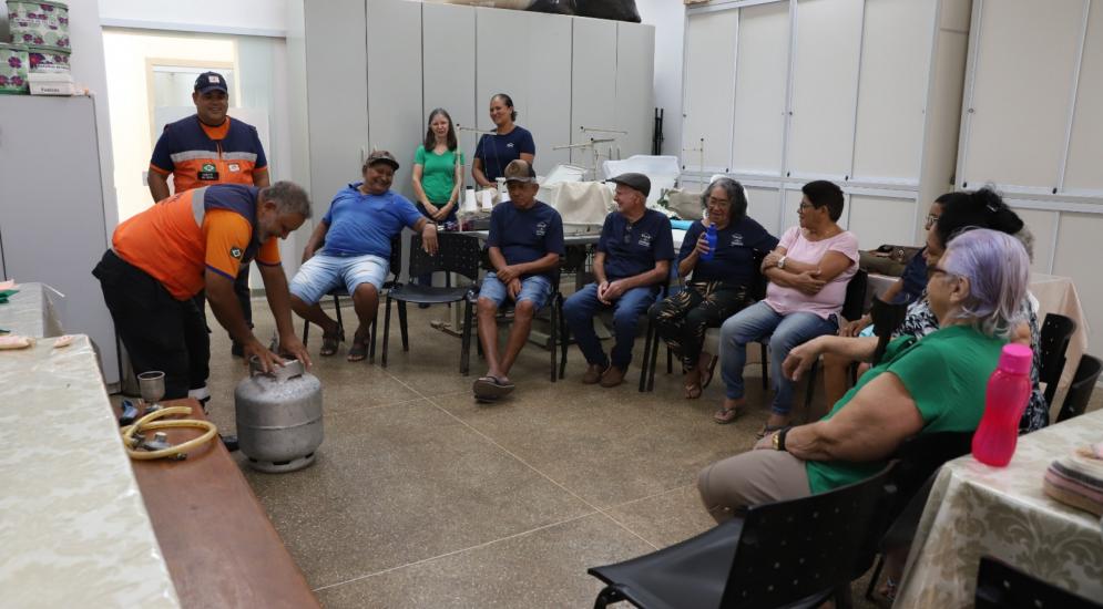 Ontem, 16 de outubro, foi dia dos idosos da Zona Leste participar de uma palestra sobre o Gás Liquefeito de Petróleo (GLP), o popular "gás de cozinha". coordenador municipal de Proteção e Defesa Civil (Compdec) Alberto Santos, tratou sobre os riscos e como agir no caso de vazamento do GLP, dicas essenciais e que os participantes tiraram de letra!