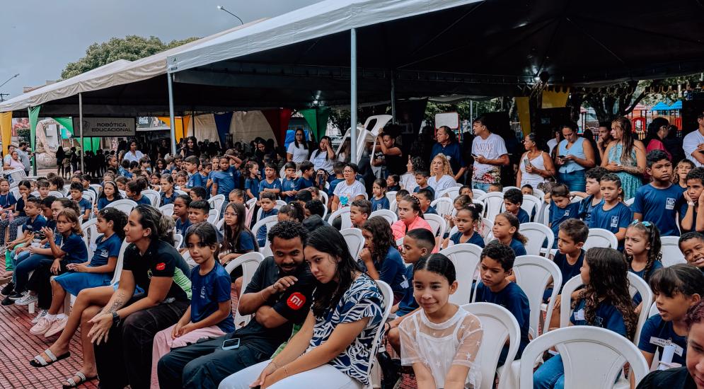 Evento do Programa Leitura e Escrita na Educação Infantil (ProLEEI), durante o 5º Seminário Municipal do Programa Alfabetiza MT. A iniciativa reforça o compromisso do município com a qualidade da educação desde os primeiros anos de vida escolar e reúne, em um único momento, diferentes políticas públicas voltadas à alfabetização.