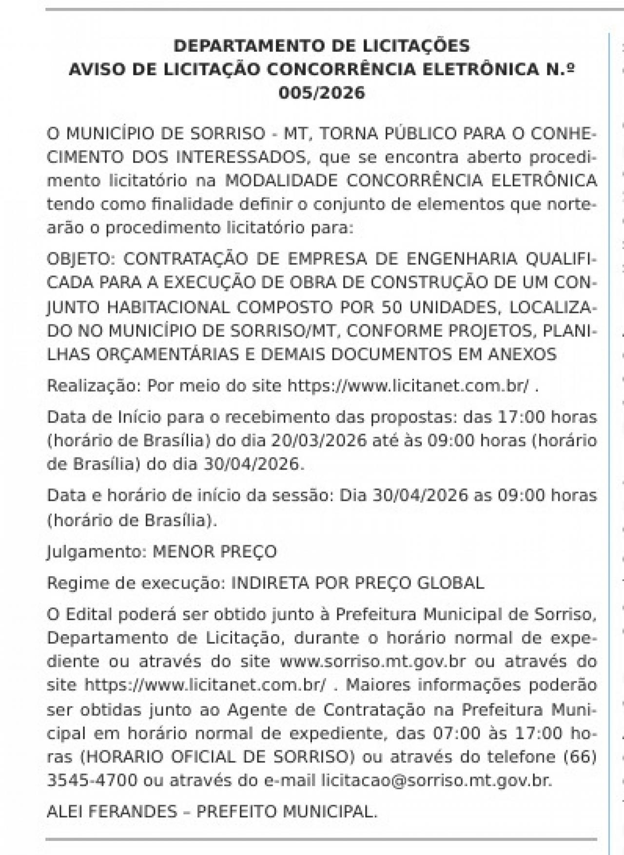 “Já a partir de hoje (20 de março), as empresas interessadas podem encaminhar suas propostas, que serão analisadas no dia 30 de abril”, informa Júnior, acrescentando que todos os detalhes do processo estão disponíveis no Portal Transparência do site da Prefeitura, bem como no site www.licitanet.com.br.