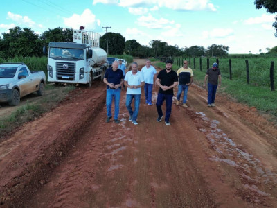 Nesta quarta-feira, 18 de fevereiro, o prefeito Alei Fernandes, o vice-prefeito Acácio Ambrosini, o secretário da Sintra Milton Geller e o secretário Lucas estiveram no local para acompanhar de perto a situação das estradas e o andamento dos trabalhos.