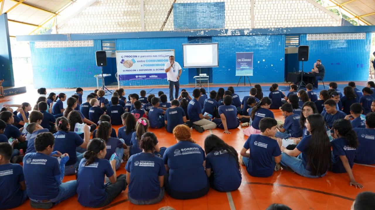 Educação para formação de consumidores mais conscientes. Foi assim que o Procon de Sorriso celebrou o Dia do Consumidor (15 de março) com atividades na quinta e na sexta-feira (12 e 13 de março), no Centro Municipal de Educação Básica de Sorriso CMEB Sorriso e na Escola Municipal São Domingos.