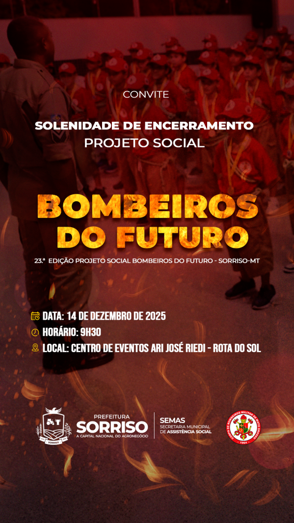 Sorriso é o berço estadual do Bombeiros do Futuro que nasceu em 2006 e desde então mais de 2,5 mil crianças e adolescentes já passaram pela formação. Esta é a 23.ª edição do proejto. A cada semestre, pelos ambientes da 10.ª CIBM, aos sábados há ecos de aulas teórica e práticas com noções de primeiros socorros, prevenção de acidentes domésticos, nós e amarrações, sexualidade, educação ambiental, consumo racional de energia elétrica, boas maneiras, educação para o trânsito, entre outras temáticas. O projeto é desenvolvido em parceria pelo Corpo de Bombeiros e a Administração Municipal.
