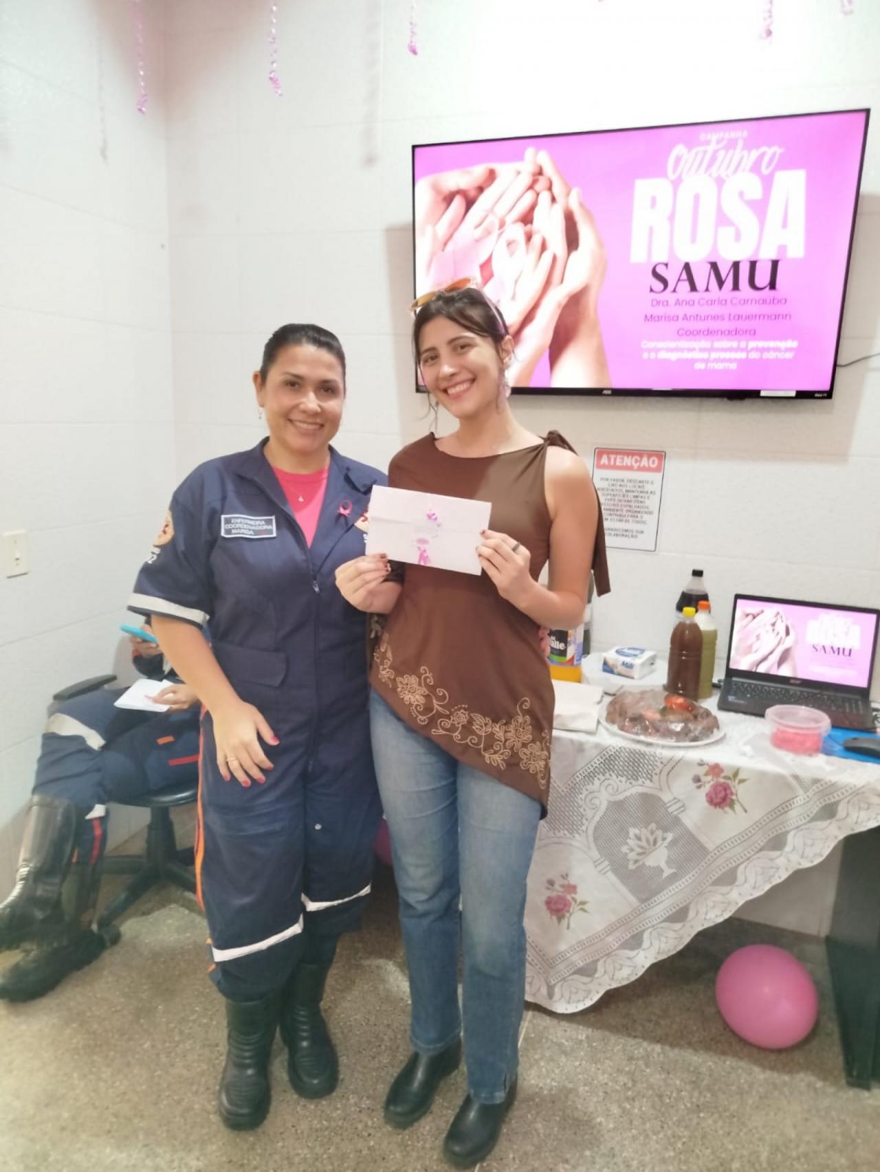 Dentro da programação Outubro Rosa, que une cuidado, valorização e saúde da mulher, o Serviço de Atendimento Móvel de Urgência (SAMU) de Sorriso realizou uma tarde especial na tarde da última sexta-feira (24), dedicada exclusivamente às servidoras de sua base e da Secretaria Municipal de Saúde. A ação visou fortalecer a importância da prevenção e do autocuidado entre os profissionais que dedicam suas vidas ao bem-estar da comunidade.