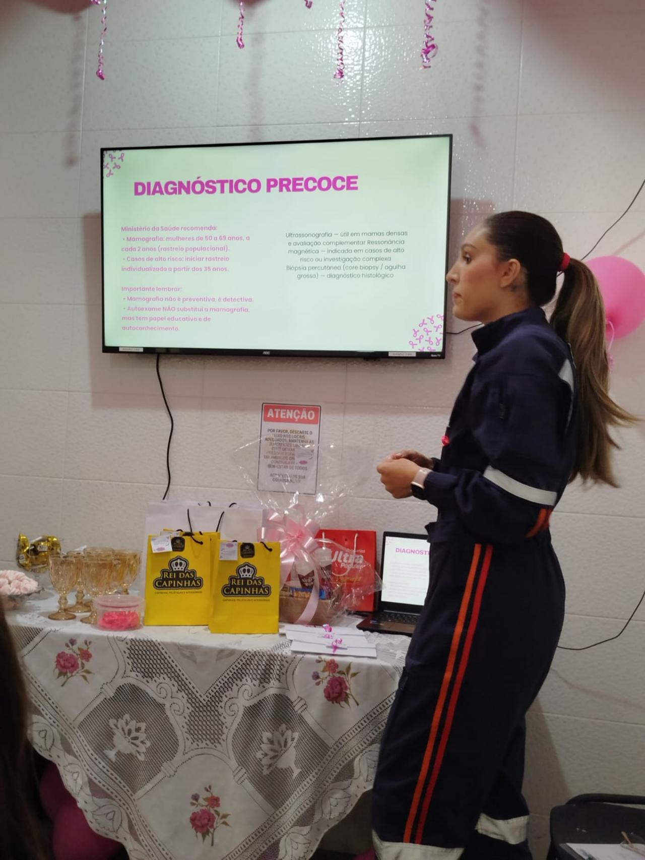 A programação teve seu início marcado com um ponto alto de conscientização, através de uma palestra ministrada pela Dra. Ana Carla Carnaúba. Sob o tema "Orientações e Prevenção do Câncer de Mama", abordando minuciosamente a crucialidade do diagnóstico precoce, as estratégias eficazes de autocuidado contínuo, bem como a necessidade de atenção constante e proativa à saúde feminina.