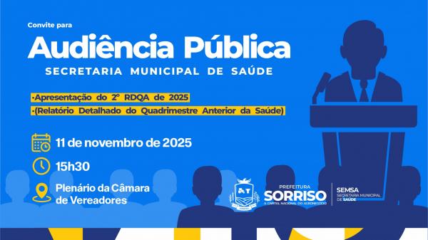 Na próxima terça-feira (11), será realizada uma Audiência Pública para a apresentação do 2º Relatório Detalhado do Quadrimestre Anterior (RDQA) de 2025. O encontro acontecerá no Plenário da Câmara de Vereadores de Sorriso e tem como objetivo garantir transparência e participação social na gestão da saúde pública.