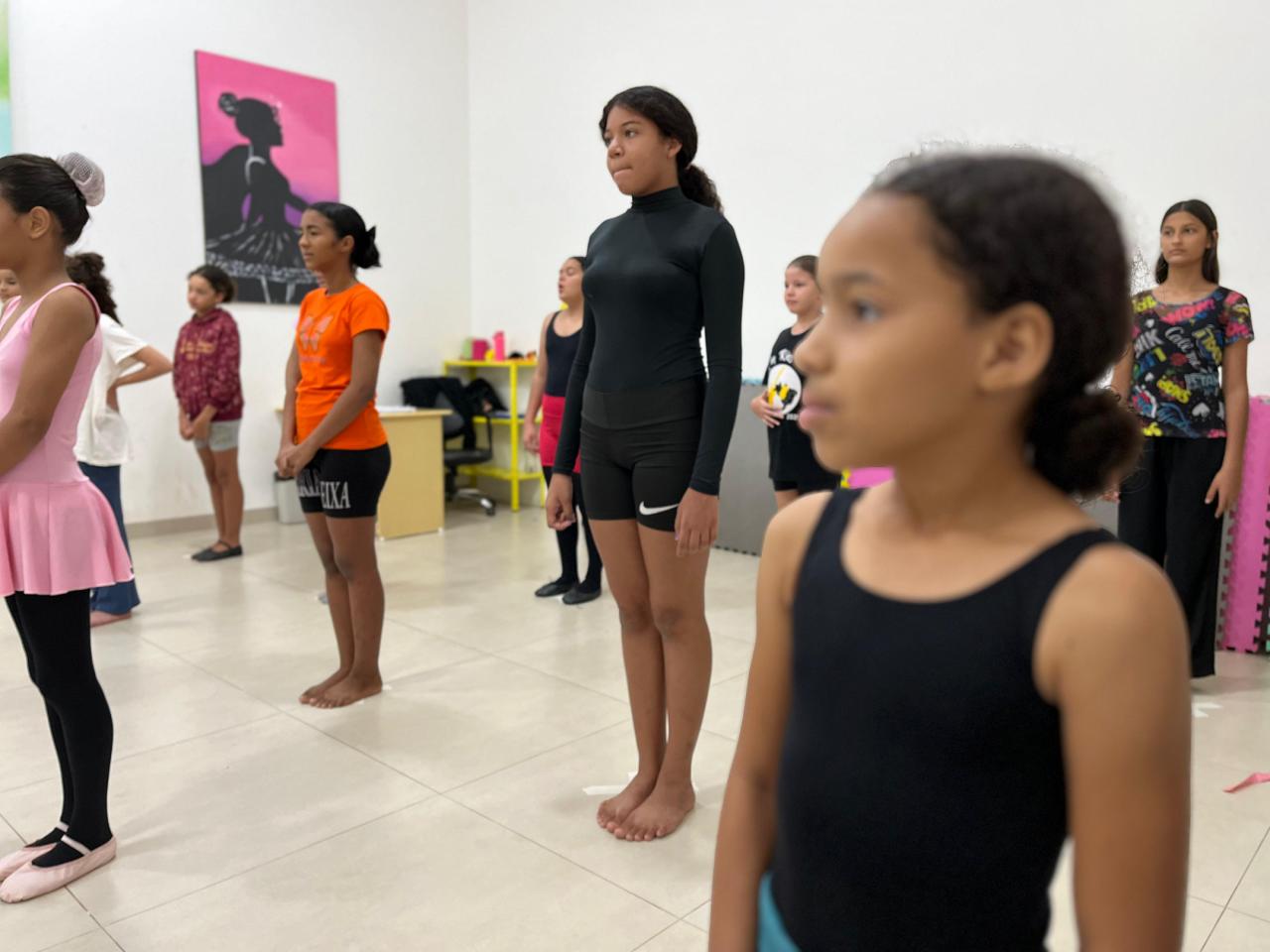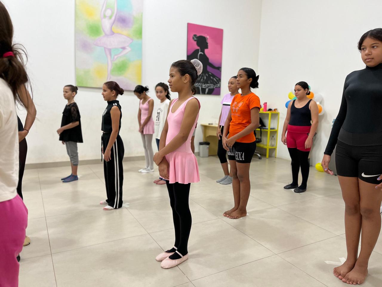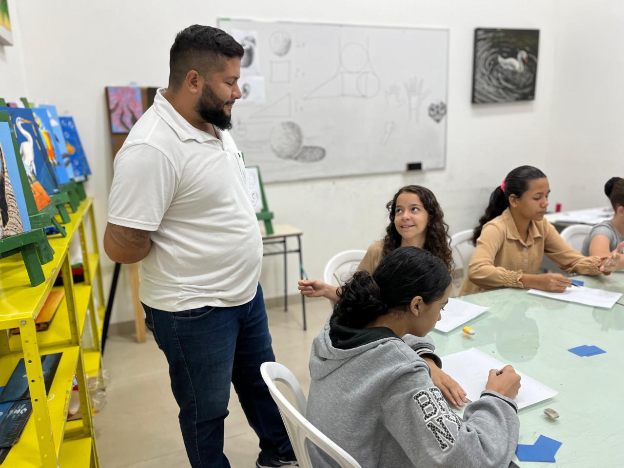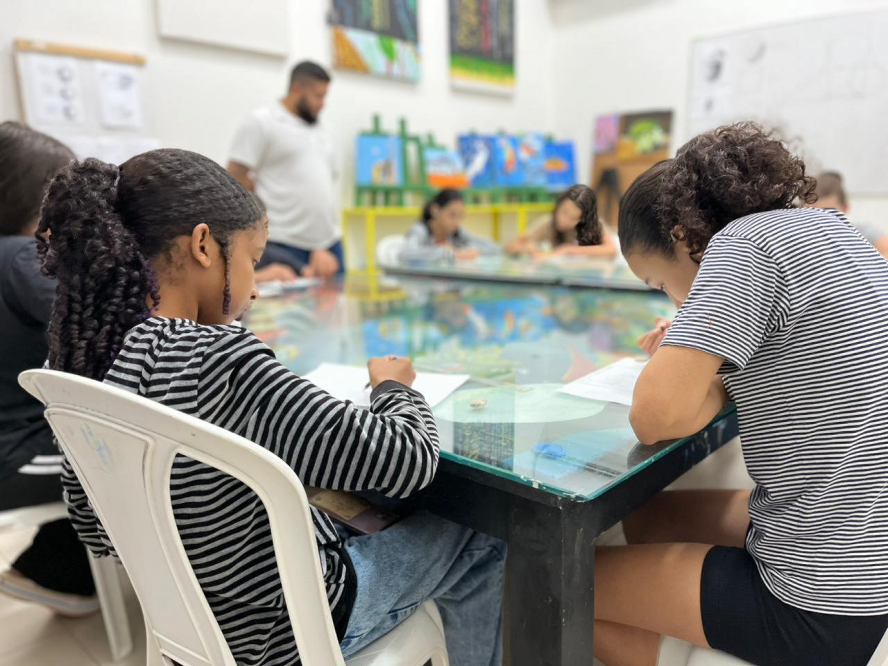 As oficinas atendem crianças, adolescentes e jovens, com atividades em contraturno escolar, abrangendo áreas como dança, música, artes visuais, teatro, capoeira, pintura e desenho.