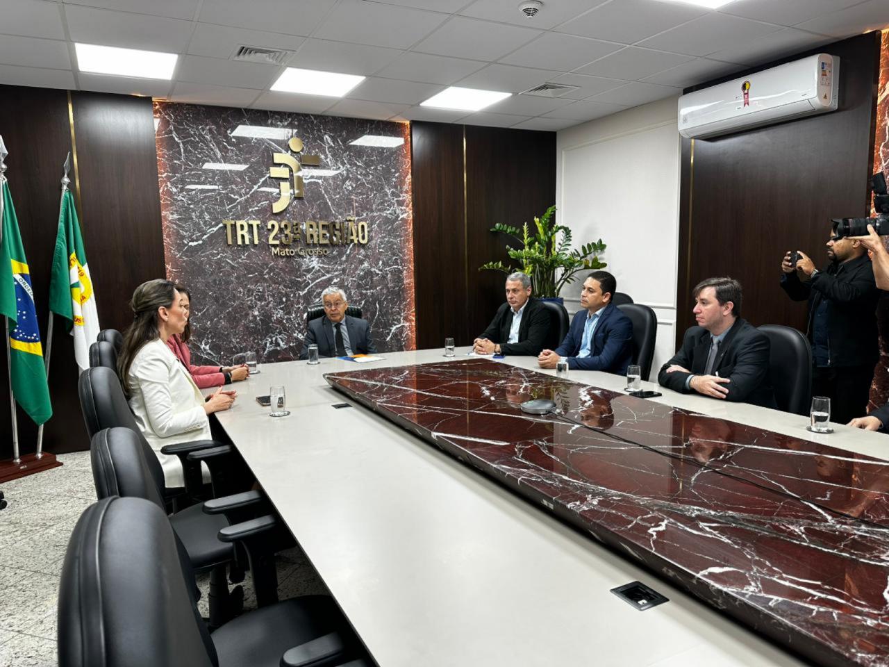 Representantes do município de Sorriso estiveram reunidos na sede do Tribunal Regional do Trabalho da 23ª Região, em Cuiabá, com o presidente eleito do tribunal, desembargador Aguimar Peixoto, para discutir a necessidade de criação da 2ª Vara do Trabalho no município.